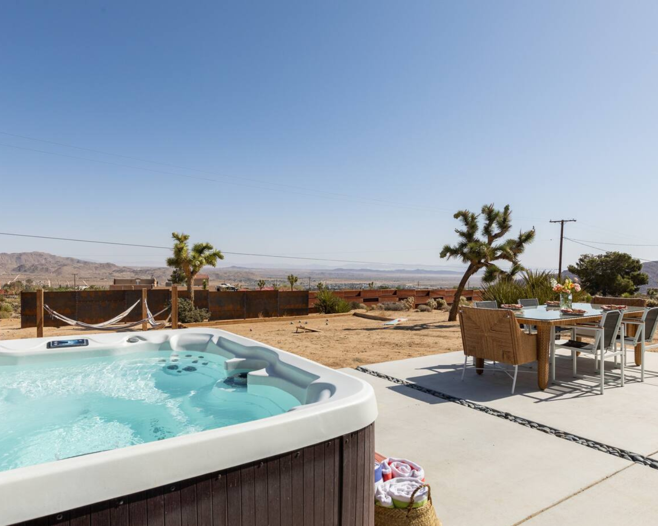 In a private villa in the desert. With outdoor hammocks, a hot tub, bocci ball, less than 10 minutes from JT National Park.